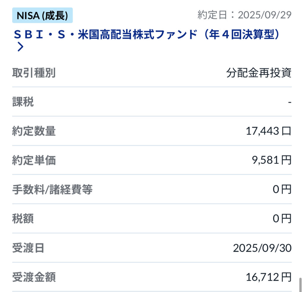 2025.9.29 第2回SBI・SCHDの分配金金額支払われました!