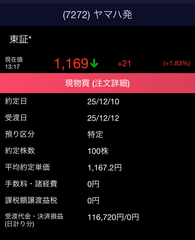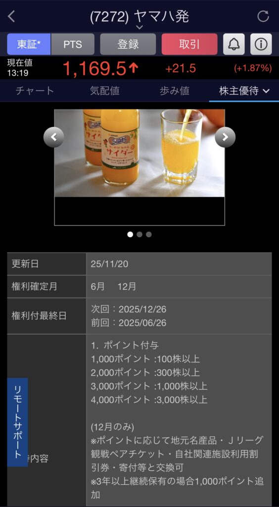 ヤマハ発動機は12月権利日の株主優待あるので買っちゃった!
