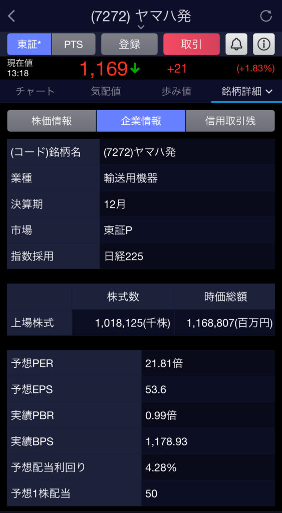 ヤマハ発動機の配当利回り4.3%